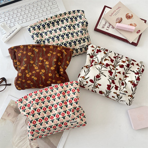 112293灯芯绒复古花朵化妆包女便携便携手拿随身洗漱袋手拿收纳袋