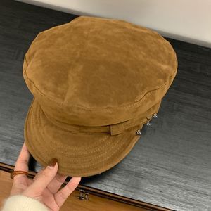 秋天氛围感美拉德风贝雷帽女棕色麂皮绒报童帽复古英伦八角画家帽