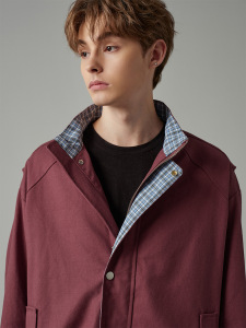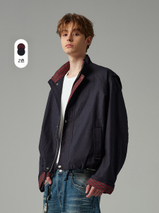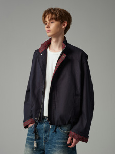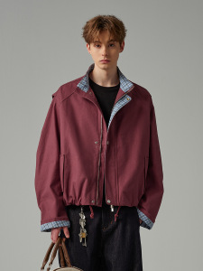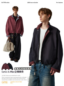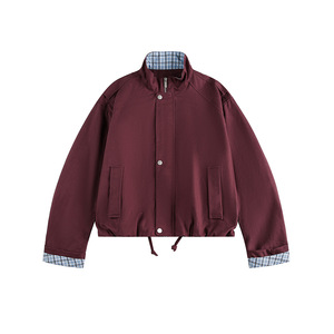 CATTEE美式复古拼接格子假两件夹克男女哈灵顿翻领cleanfit外套秋
