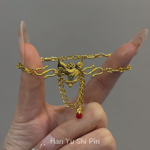 时尚新中式手工编织沙金狐狸面具流苏手链小众百搭高颜值国风手环