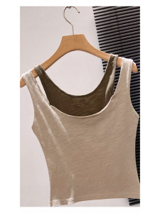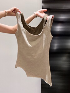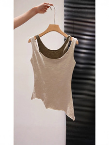 超软糯超亲肤~撞色假两件背心吊带女甜辣不规则卷边无袖圆领上衣