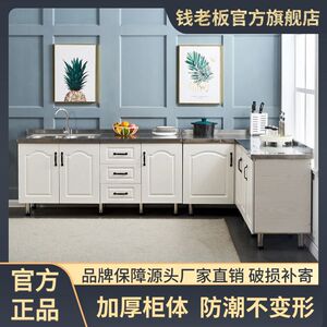 简易不锈钢橱柜厨房柜子租房用厨柜储物家用灶台柜一体水槽柜组装
