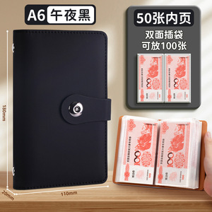 C007-【圆扣密码锁镜面存钱本】-曜石黑-50张内页(双面可放100张)