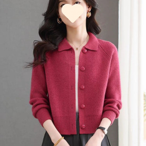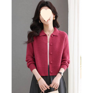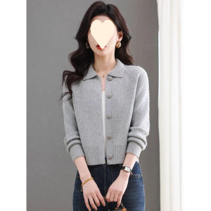 翻领小香风毛衣外套女春秋外搭洋气减龄上衣设计感拉链针织开衫