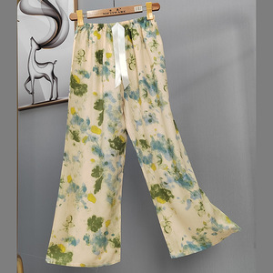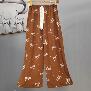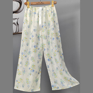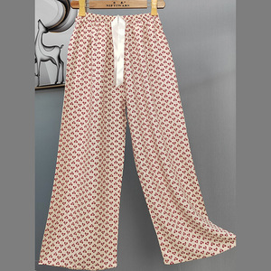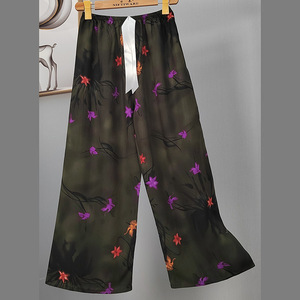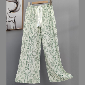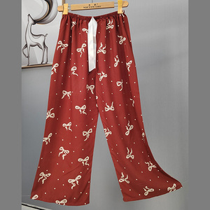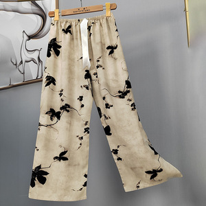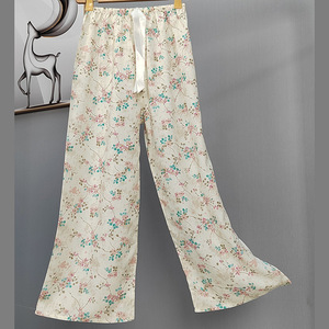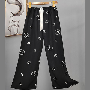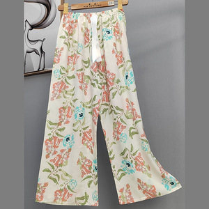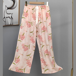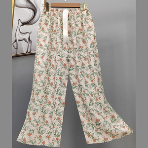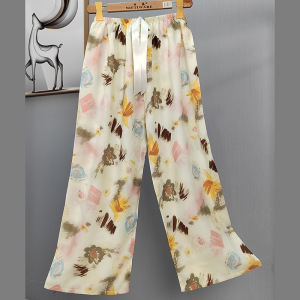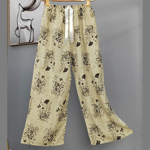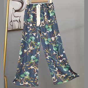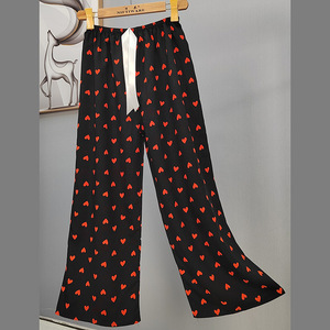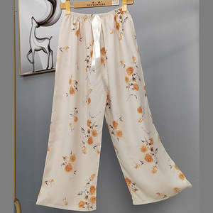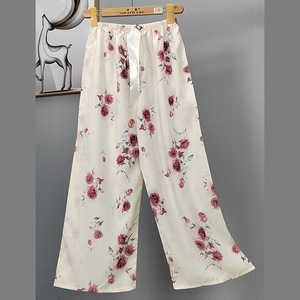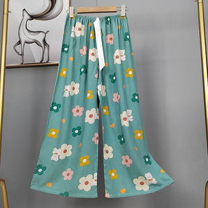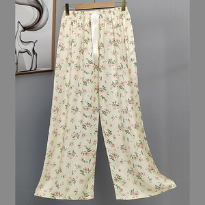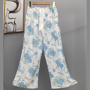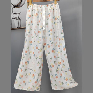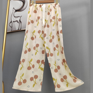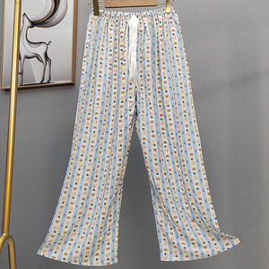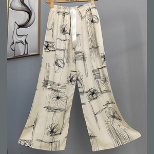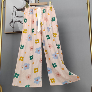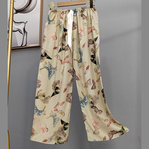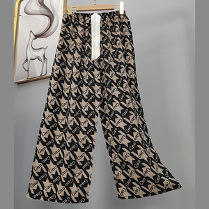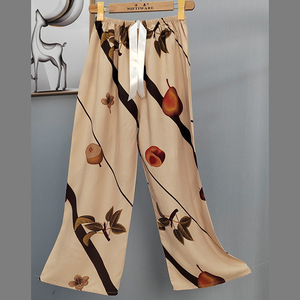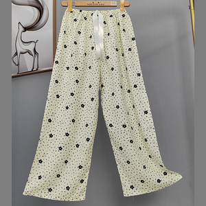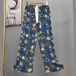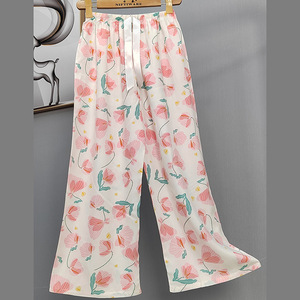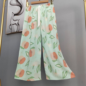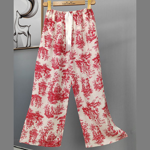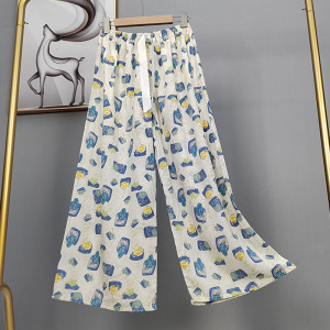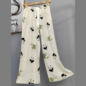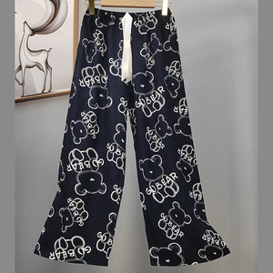 2025网红爆款棉绸睡裤女士可外穿大码宽松阔腿裤卡通印花家居裤