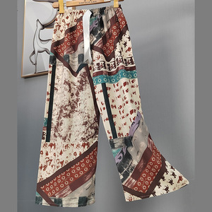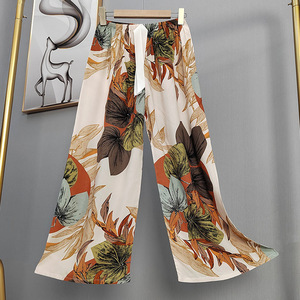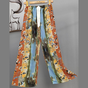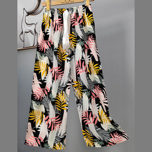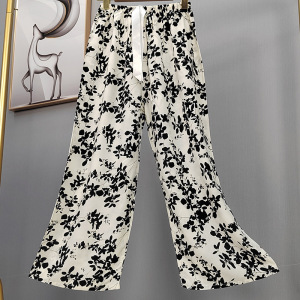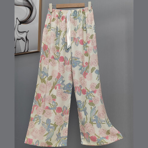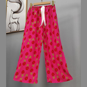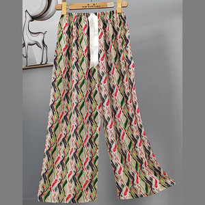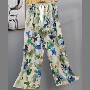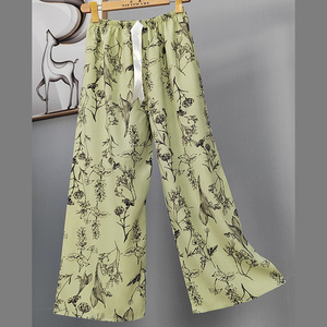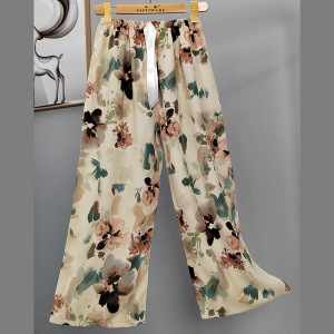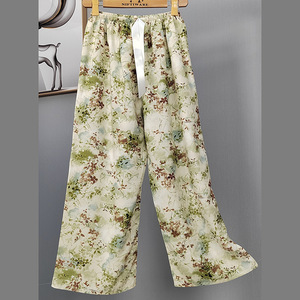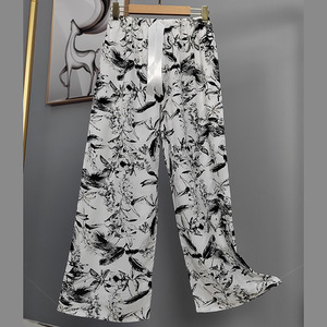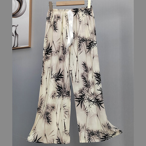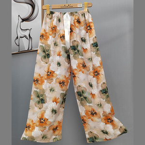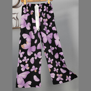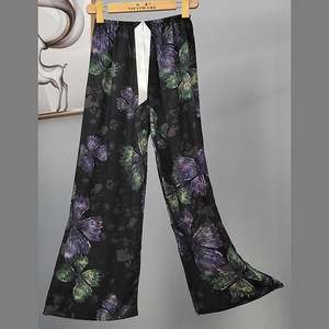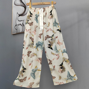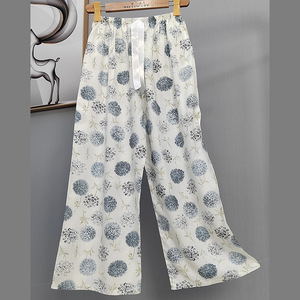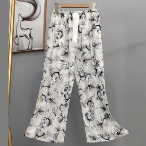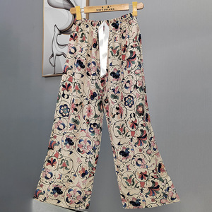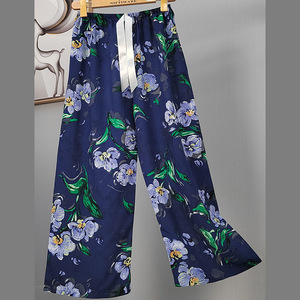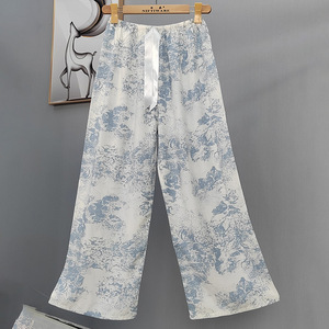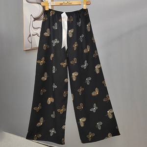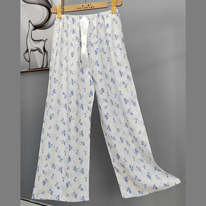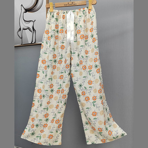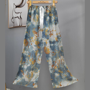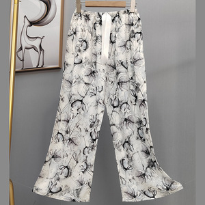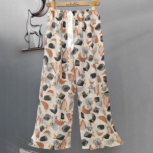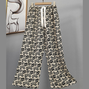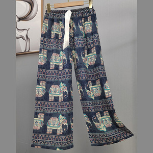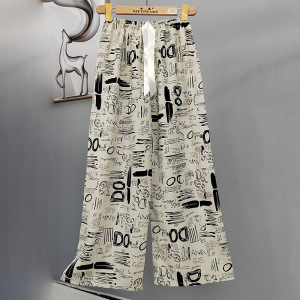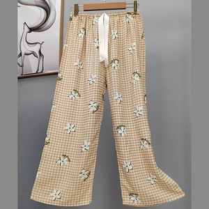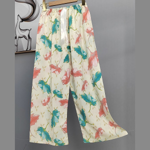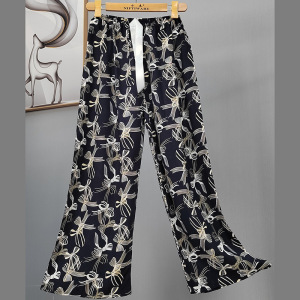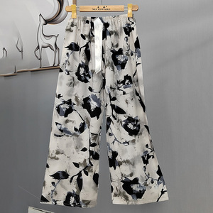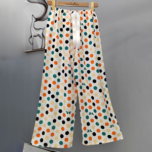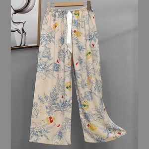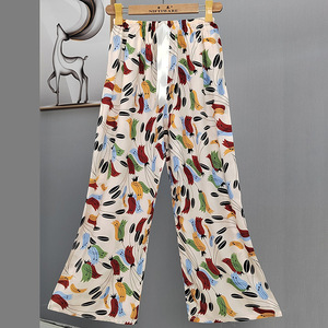 2025网红爆款棉绸睡裤女士可外穿大码宽松阔腿裤卡通印花家居裤