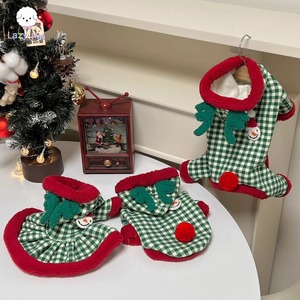 秋冬季日韩风小狗狗衣服绿格连帽圣诞雪人卫衣万圣节圣诞宠物衣服