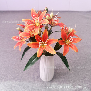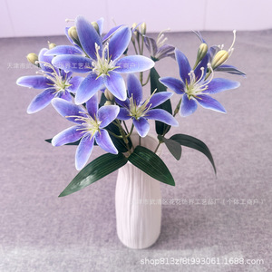 10头胶片小百合高级仿真花酒店摆设轻奢婚庆家居客厅装饰摄影道具