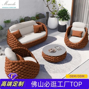 户外沙发庭院别墅阳台藤椅茶几家具组合露天光房防水防晒藤编休闲