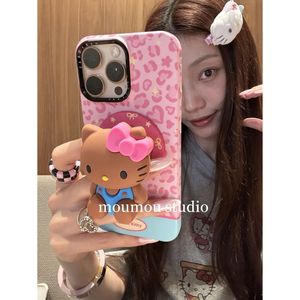 【单壳+支架】个性粉豹纹立体猫咪磁吸