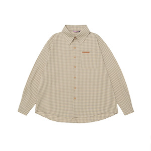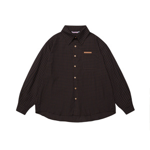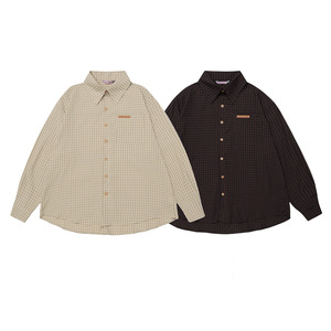 D195美式复古高级感古着男女款刺绣小众设计男式格纹薄款长袖衬衫