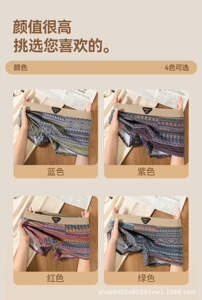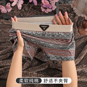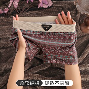 复古女士平角内裤防走光纯棉女士内裤复古中腰舒适透气四角裤衩