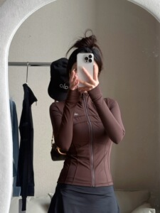 现货alo速干修身防晒瑜伽服立领外套女士运动普拉提训练长袖上衣