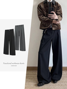 OkayThxBye 527g TR分褶A字休闲阔腿垂感宽松西裤通勤直筒长裤男