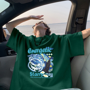 100%纯棉设计感涂鸦简约字母印花短袖美式复古t恤夏季宽松上衣男