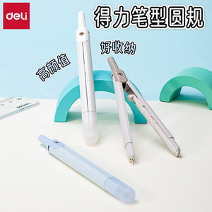 得力金属圆规小学生初中生绘图易收纳铅芯圆规套装学生文具批发