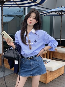 【高品质订货】欧尼同款!复古撞色翻领刺绣宽松条纹衬衫 # LWD