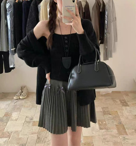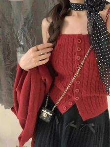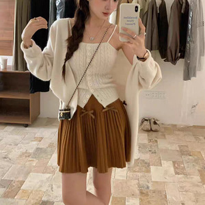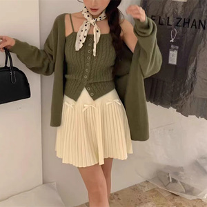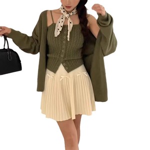秋の韓国スタイルのレイジースタイルツイストニットツーピーススーツベスト+Vネックルーズシンプルな無地カーディガンジャケット女性用