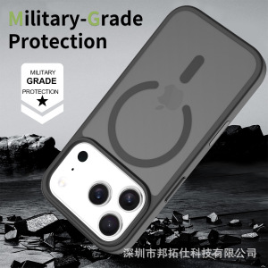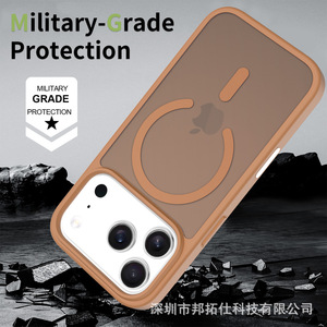 适用iphone17promax手机壳银盾大孔磁吸磨砂肤感三星防摔保护套16