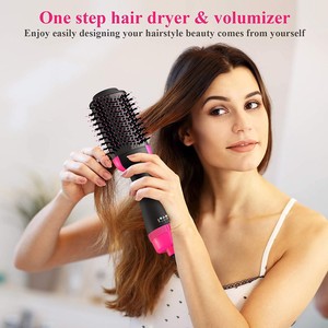 跨境亚马逊四合一热风梳厂家直销二合一多功能负离子卷直发吹风梳