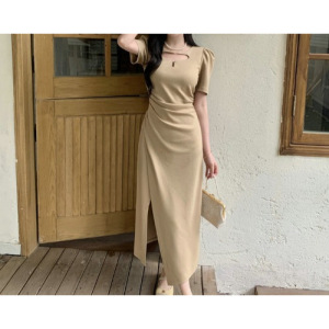 杏色连衣裙(优质版)【设计感/冷淡系/感/巨显瘦遮肚子/遮肉/复古/修身/别致超好看/藏肉/小个子/