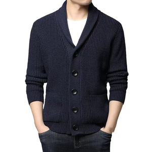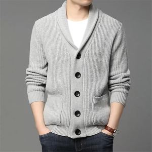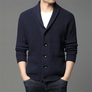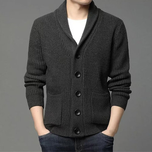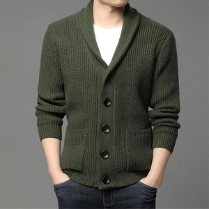 秋冬季男士加厚纽扣开衫羊毛衫青果领毛衣外套V领纯色休闲针织衫