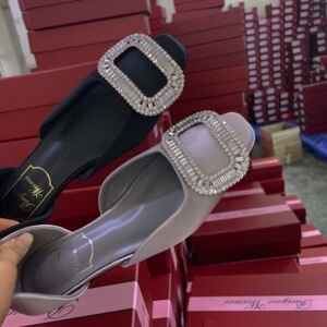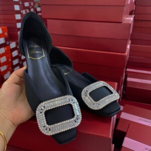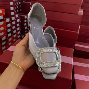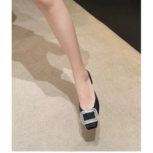 百搭缎面黑色方头单鞋时尚中空粗跟女鞋新款水钻韩版浅口低跟鞋女