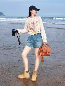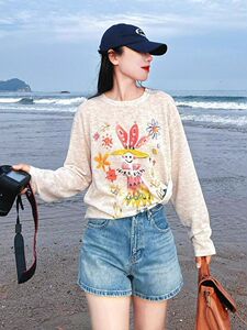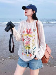 美式复古彩绘印花长袖t恤女夏季宽松显瘦防晒打底罩衫春秋上衣潮