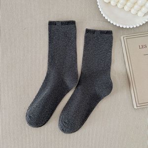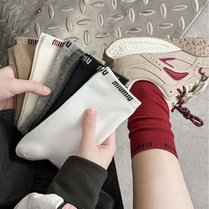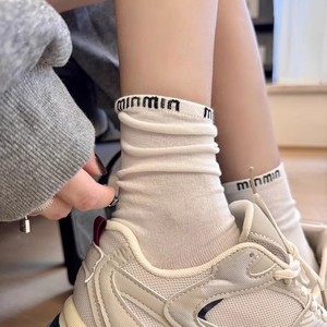 miu系字母袜子女中筒袜格雷系小众堆堆袜高街百搭黑白色长袜春秋