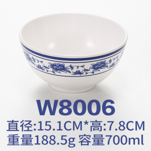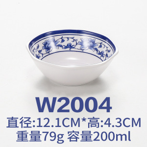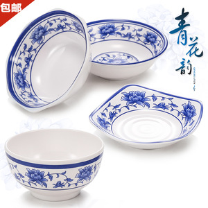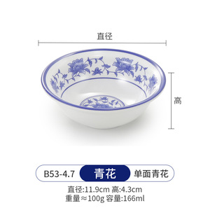 密胺仿瓷青花小碗中式酒店饭店餐具米饭碗餐厅快餐汤碗粥碗塑料碗