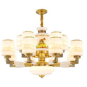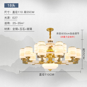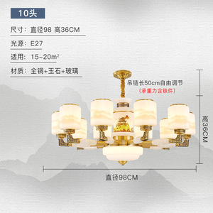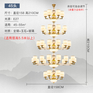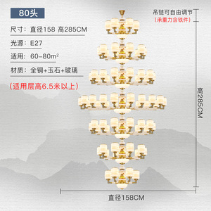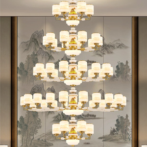 全铜玉石新中式客厅吊灯现代大气禅意卧室复式别墅楼中楼挑空吊灯