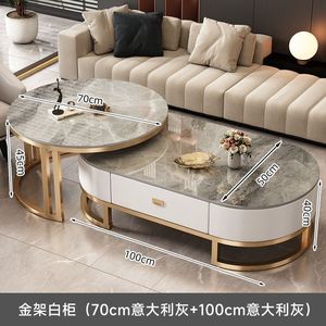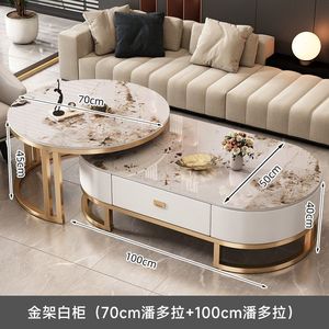 岩板茶几客厅家用轻奢现代2025新款简约小户型茶台椭圆茶几组合