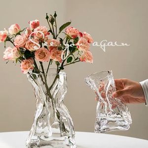 高级感简约创意不规则花瓶透明玻璃客厅桌面插花水养ins装饰摆件