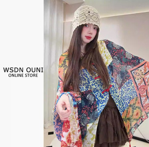 2025新款民族风薄款丝巾披肩女夏季旅游拍照出片百搭气质披风斗篷