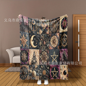 jit新款跨境热销复古拼布法兰绒毛毯 格子猫狗设计旅行毯家居盖毯