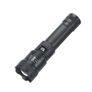 跨境户外led强光手电筒家用多功能可充电智能电显伸缩变焦手电筒