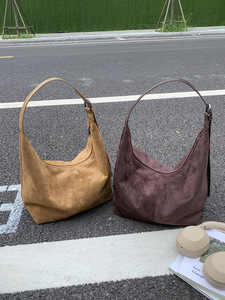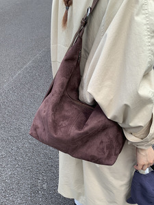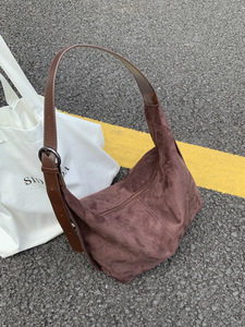 休闲复古麂皮绒包包女式2025新款轻便百搭单肩斜挎包大容量托特包
