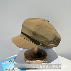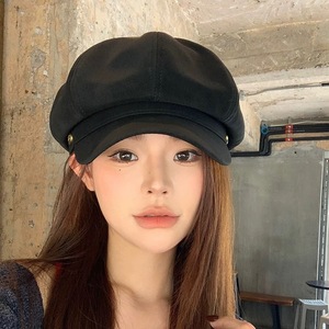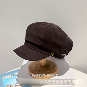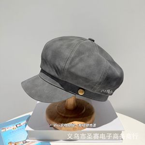 日系大头围棕色磨砂皮八角帽子女秋冬季皮质复古文艺韩版报童帽