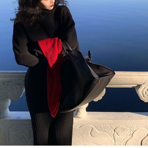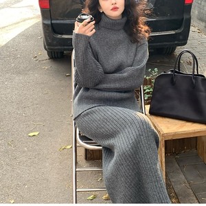 法式长款针织打底裙高领长袖套头+半身裙气质内搭毛衣裙两件套装