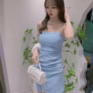 吊带连衣裙2025夏季新款收腰显瘦裙子女遮肉气质性感纯色包臀裙