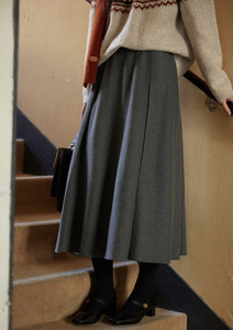 soligther 法式复古灰色羊毛针织半身裙女秋冬
