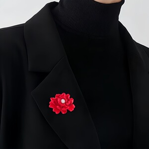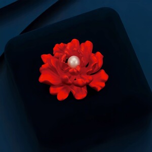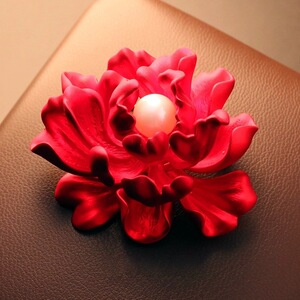 红色牡丹花胸针高级感小众高端高档珍珠胸花复古别针衣饰批货女男