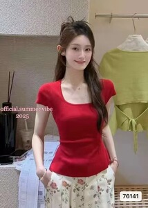 后绑带收腰修身短袖针织衫女夏季2025新款韩版百搭露腰t恤上衣