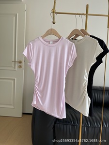 露露lulu抽褶设计莫代尔混纺圆领正肩弹力修身短袖T恤瑜伽健身服