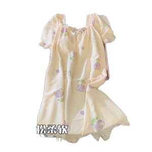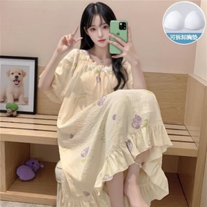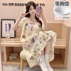 带胸垫短袖睡裙夏季云朵棉2025新款睡裙中长款宽松可爱卡通家居服