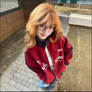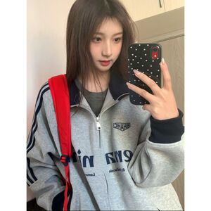 2025秋季新款通勤潮流印花字母撞色三条杠连帽卫衣外套