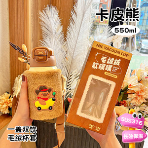 186毛绒-咖色卡皮熊550ML【吸管+彩盒】