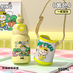 卡通高颜值儿童保温杯双饮口大容量316不锈钢吸管杯户外便携水杯