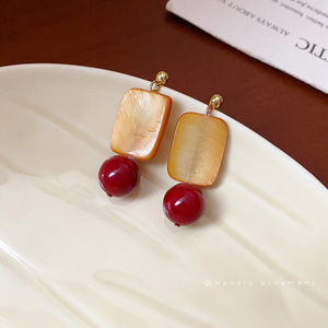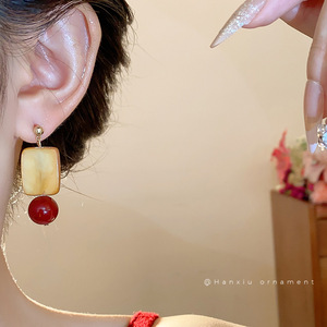 银针方糖玻璃珠吊坠耳钉新中式复古时尚气质耳环轻奢高级感耳饰女