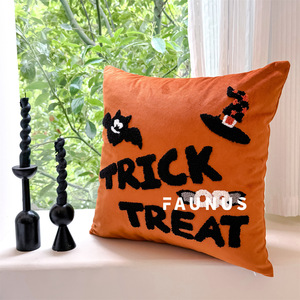 PV绒南瓜抱枕绗绣刺绣幽灵小鬼来图万圣节毛绒玩具跨境抱枕套靠枕